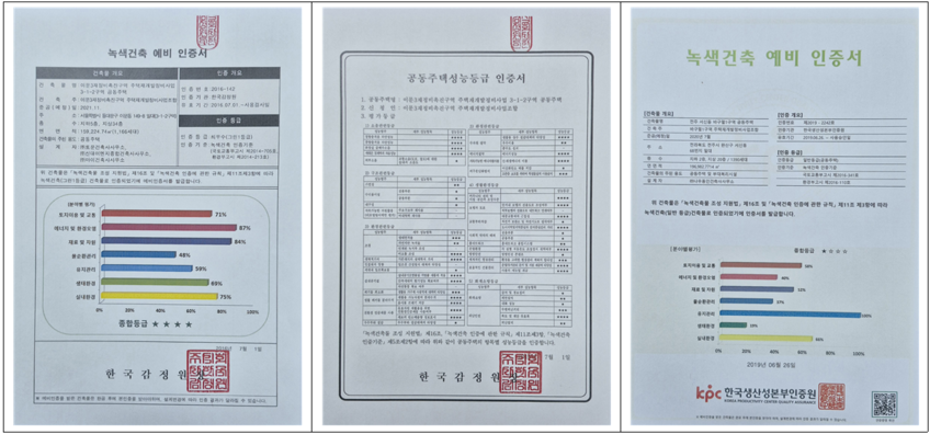 ■ 「녹색건축 인증기준」 & 「공동주택 성능등급 기준」 1급 [예비인증/본인증] 사례 제공.