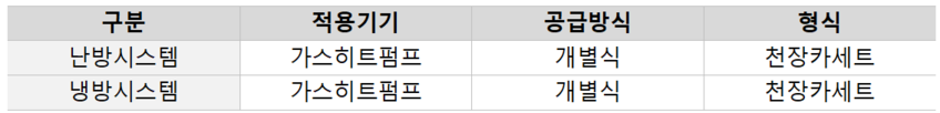 냉난방 시스템은 고효율 COP의 가스히트펌프와 전기히트펌프가 적용되었고 급탕은 전기 온수기가 적용되었다. 건물에 사용된 조명기기는 100% LED를 적용하였고 평균 조명밀도는 5.5(W/㎡) 미만이 되도록 계획하여 에너지요구량 및 소요량을 최소화하였다.