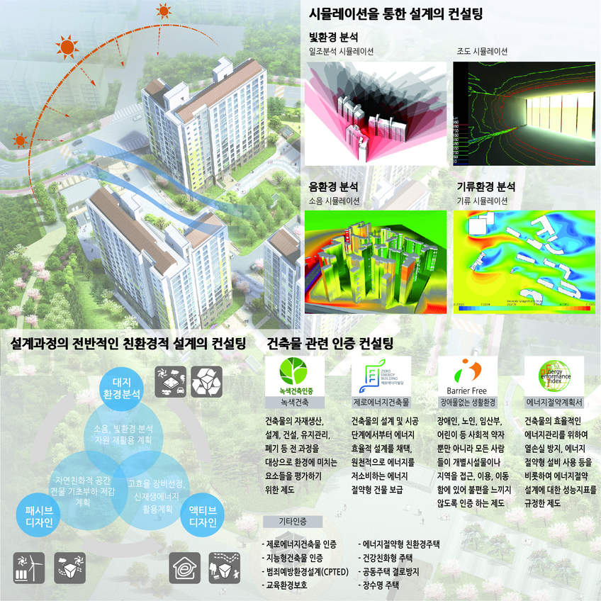 또한, 정부와 지자체의 지속가능한 발전에 대한 다양한 정책과 제도로 기인하여 건축분야에서도 친환경건축을 위한 녹색건축물 활성화를 구현하려는 노력이 진행되고 있습니다.