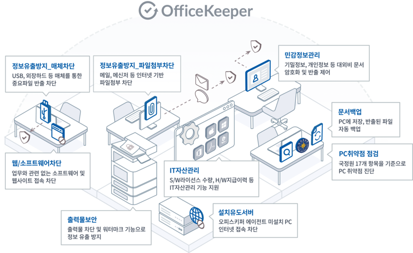 - 오피스키퍼(OfficeKeeper) : 업무 데이터의 안전한 관리 및 보안 솔루션