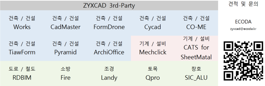 에코다는 ZYXCAD를 통해 건축 설계의 정확성과 생산성을 향상시키는 데 기여합니다. ZYXCAD 소프트웨어 판매와 함께, 데이터 기반 설계의 도입 및 활용을 위한 실무 중심의 교육과 기술 지원을 제공하여 고객의 디지털 전환을 돕습니다. 에코다의 전문성을 바탕으로 ZYXCAD 사용자들이 설계 역량을 강화하고, 프로젝트를 더욱 성공적으로 이끌 수 있도록 지원합니다.