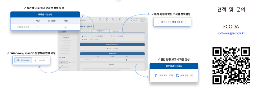 에코다는 친환경 건축 프로젝트에서 발생하는 귀중한 지적 자산과 민감한 데이터를 안전하게 관리할 수 있도록 지란지교소프트의 솔루션을 제안하고 기술 지원합니다. 고객의 정보 보안 체계를 강화하고, 안정적인 업무 환경을 구축하여 프로젝트의 연속성과 신뢰성을 높이는 데 기여합니다.