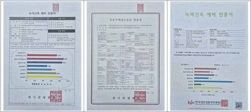 ■ 「녹색건축 인증기준」 & 「공동주택 성능등급 기준」 1급 [예비인증/본인증] 사례 제공.