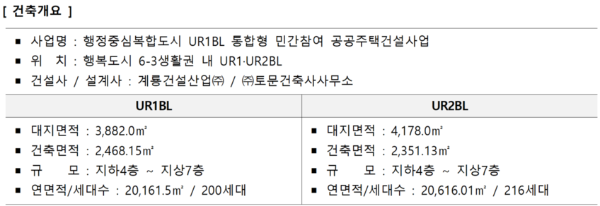 행복도시 6-3생활권 UR1·UR2BL 통합형 민간참여 공공주택